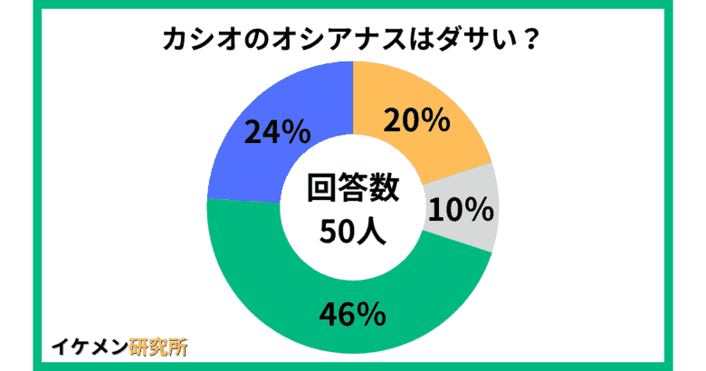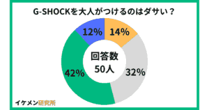 因みに「ダサい」と感じる人は0人で、「少しダサい」は全体の約14%(7人)いることも事実です。